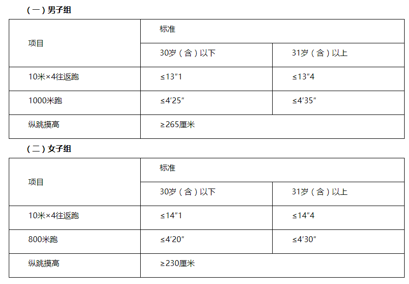 體能測評三項全部達標方為合格。報考理化檢驗、獄醫(yī)緊缺職位的人員,體能測評三項中有兩項達標的,視為合格。
