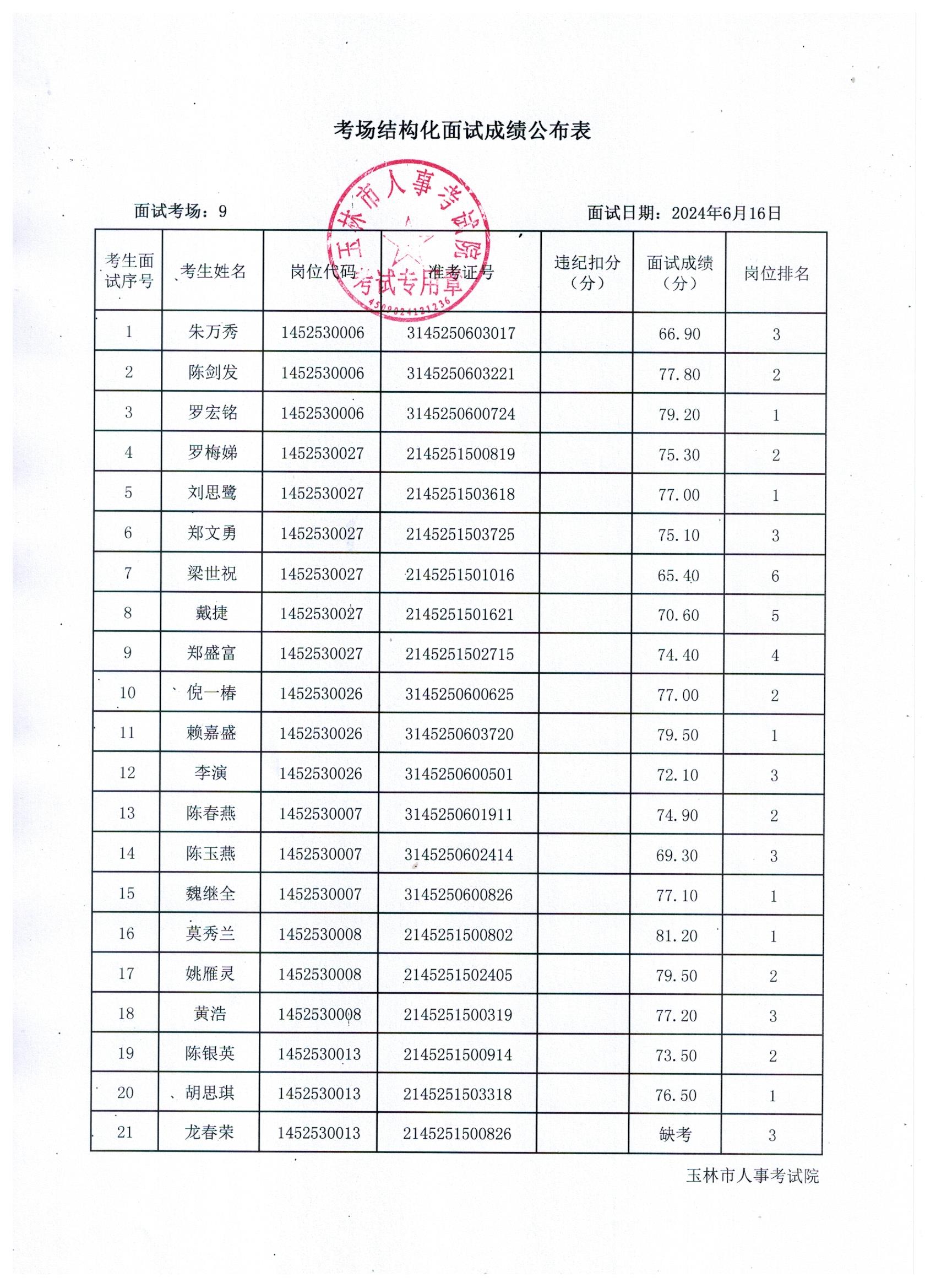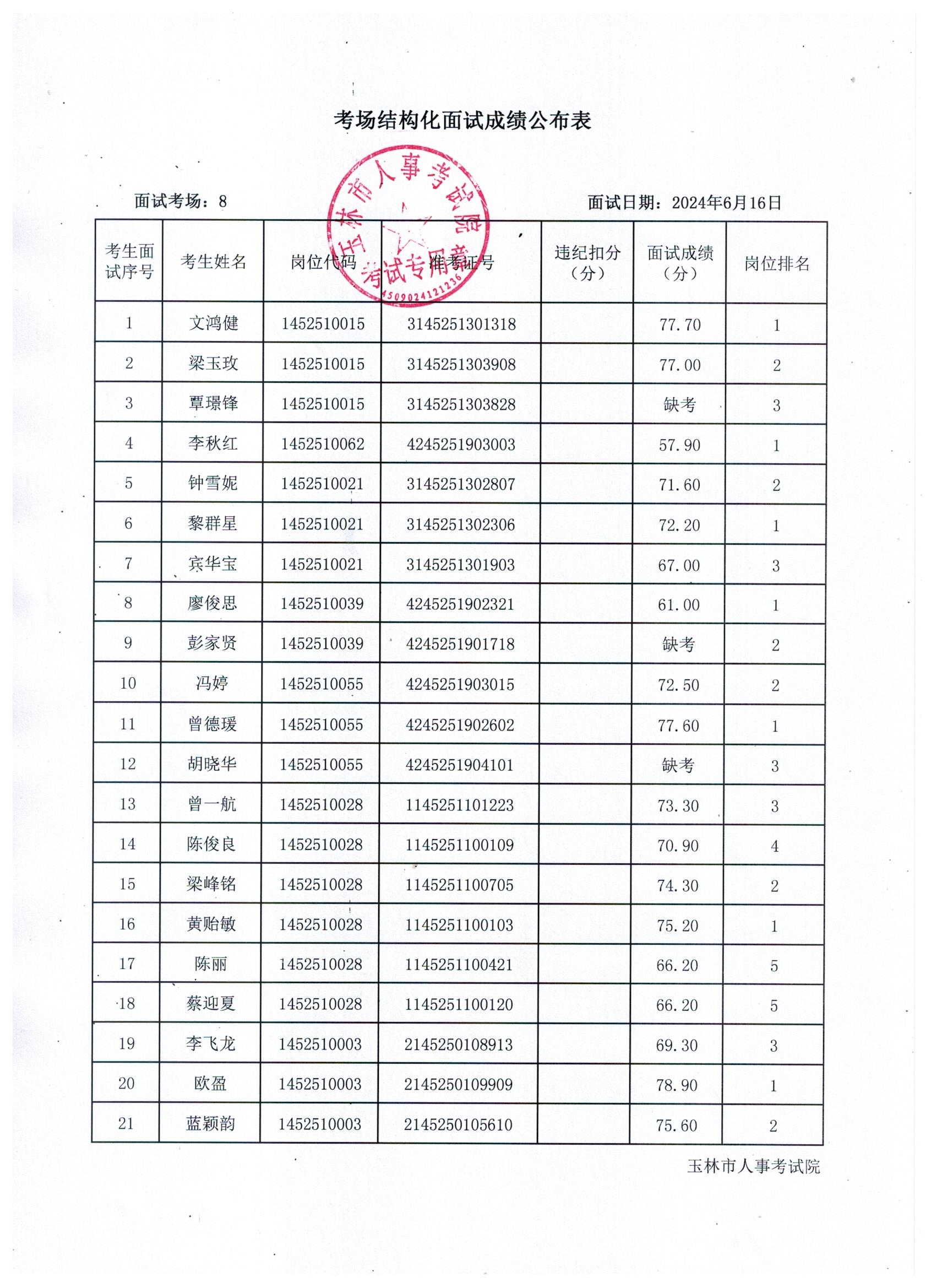 原文標(biāo)題:2024年玉林市直(含玉州區(qū)、福綿區(qū)、玉東新區(qū))事業(yè)單位公開招聘人員面試成績公布(6月16日)