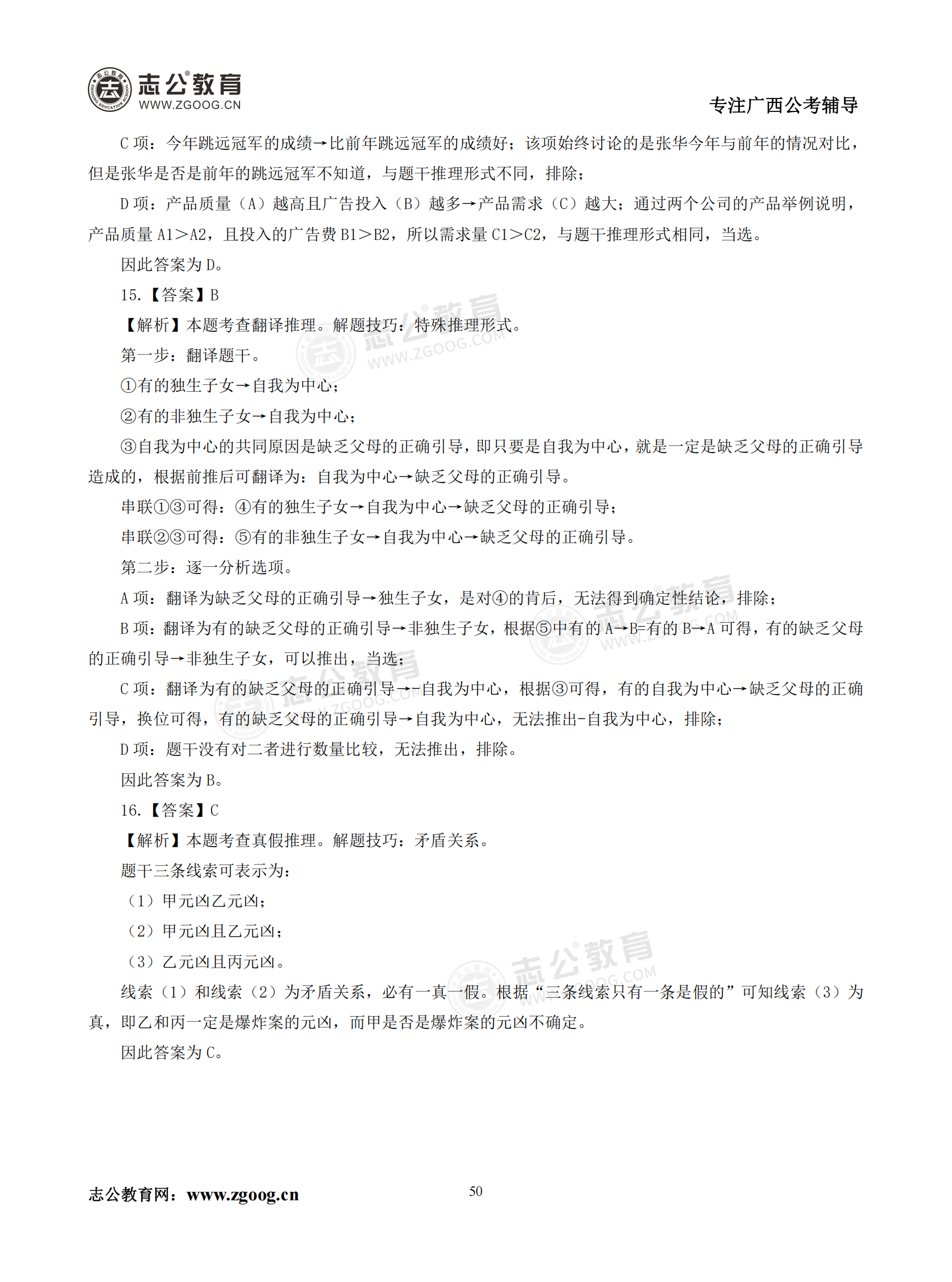 【公考模塊練習】判斷推理題四(答案)