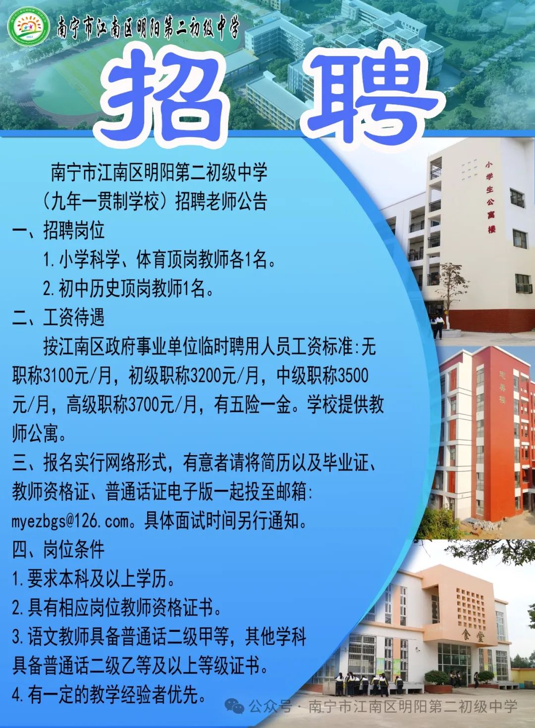 2025年南寧市江南區(qū)明陽第二初級中學招聘教師公告