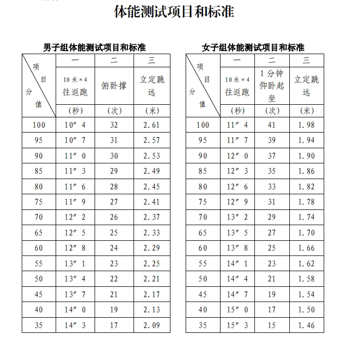 2.體能測(cè)試:參照人民警察招錄標(biāo)準(zhǔn)執(zhí)行,體能測(cè)試三項(xiàng)全部達(dá)標(biāo)的,方為合格。(詳見(jiàn)附件2)