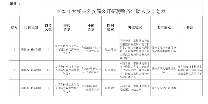 原文標(biāo)題:大新縣公安局公開招聘警務(wù)輔助人員公告