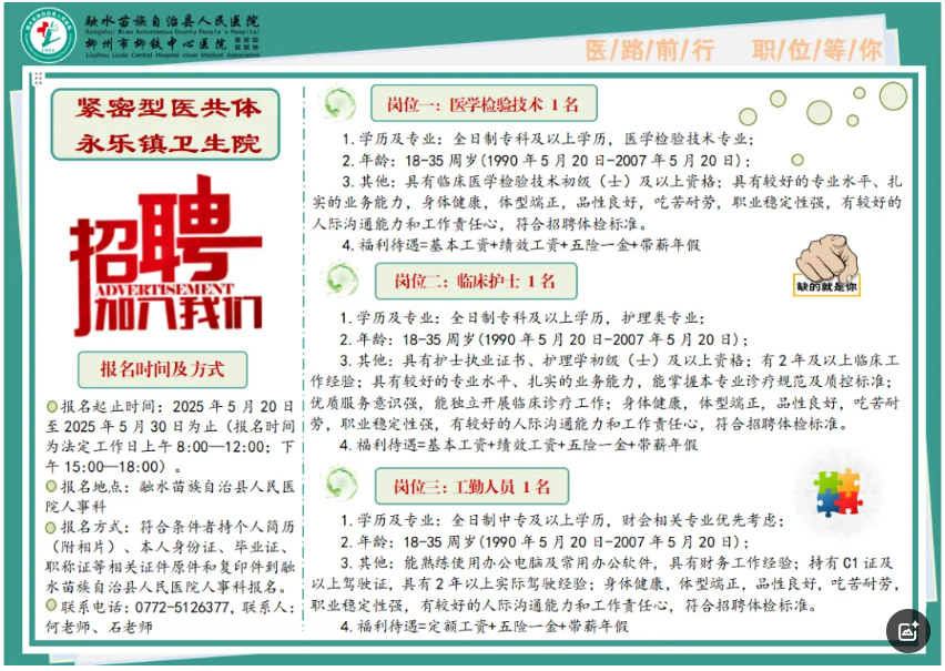 2025年廣西柳州緊密型醫(yī)共體永樂鎮(zhèn)衛(wèi)生院招聘3人