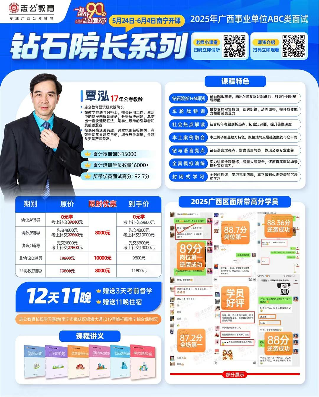 2025年廣西事業(yè)單位面試即將到來!面對激烈的競爭,志公教育重磅推出鉆石院長系列課程,分別由志公教育面試研究院院長覃泓院長和志公教育資深講師金孟老師主講,為考生提供面試提升方案,助力考生攻克難關!