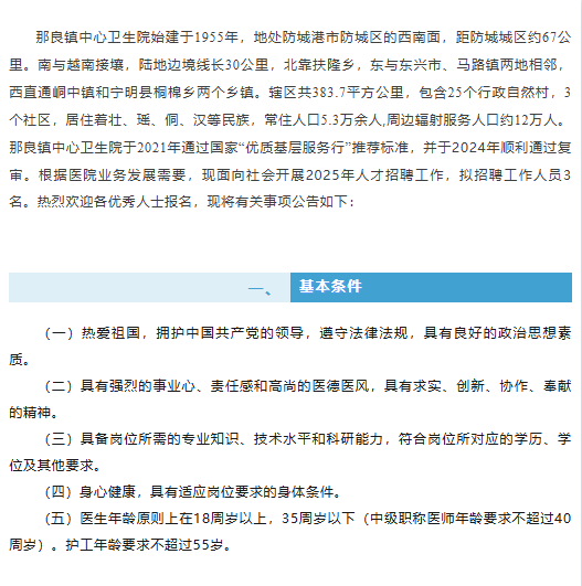 原文標(biāo)題:招醫(yī)生、護工啦!防城區(qū)那良鎮(zhèn)中心衛(wèi)生院“職”等你來