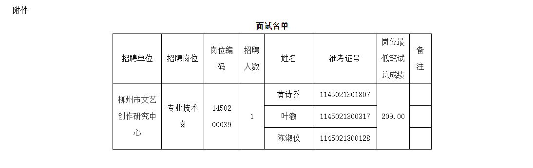 根據(jù)《廣西壯族自治區(qū)事業(yè)單位公開(kāi)招聘人員實(shí)施辦法》(桂人社發(fā)〔2011〕155號(hào))、《廣西壯族自治區(qū)人力資源和社會(huì)保障廳關(guān)于印發(fā)廣西2025年度上半年事業(yè)單位統(tǒng)一公開(kāi)招聘工作實(shí)施方案的通知》(桂人社發(fā)〔2025〕3號(hào))、《柳州市2025年度上半年事業(yè)單位公開(kāi)考試招聘工作人員公告》等文件精神,柳州市文聯(lián)擬組織所屬事業(yè)單位柳州市文藝創(chuàng)作研究中心公招面試工作,現(xiàn)將相關(guān)事宜公告如下:
