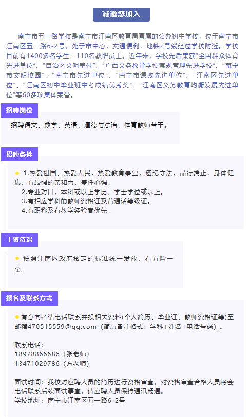 南寧市五一路學(xué)校2025年秋季學(xué)期教師招聘公告