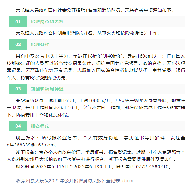 2025年來(lái)賓大樂(lè)鎮(zhèn)招聘消防隊(duì)員1人