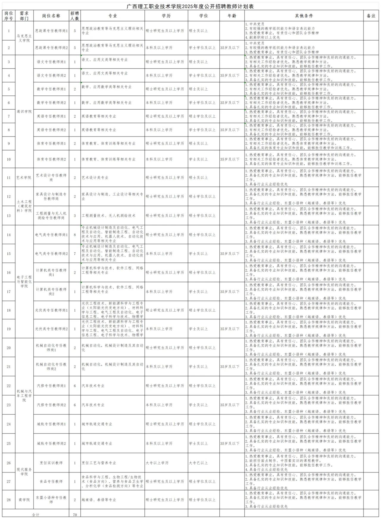 詳見《廣西理工職業(yè)技術(shù)學(xué)院2025年度公開招聘教師計(jì)劃表》