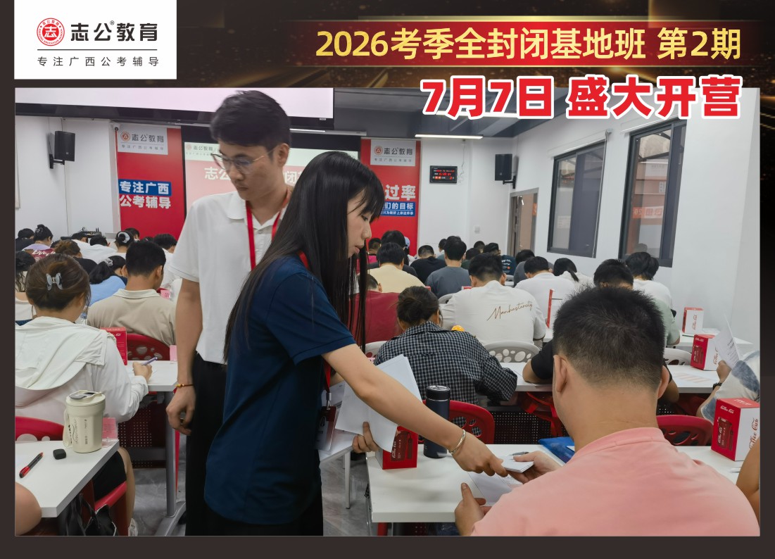 志公教育基地班第二期自7月7日開班以來,已歷時(shí)一周有余。這座位于南寧總部的“備考堡壘”正以封閉式管理、精細(xì)化教學(xué)和全方位服務(wù),為數(shù)百名學(xué)員鋪就一條通往2026年國(guó)家公務(wù)員考試的“上岸之路”。學(xué)員們普遍反饋:“這里不僅是學(xué)習(xí)的殿堂,更是夢(mèng)想啟航的加油站。”
