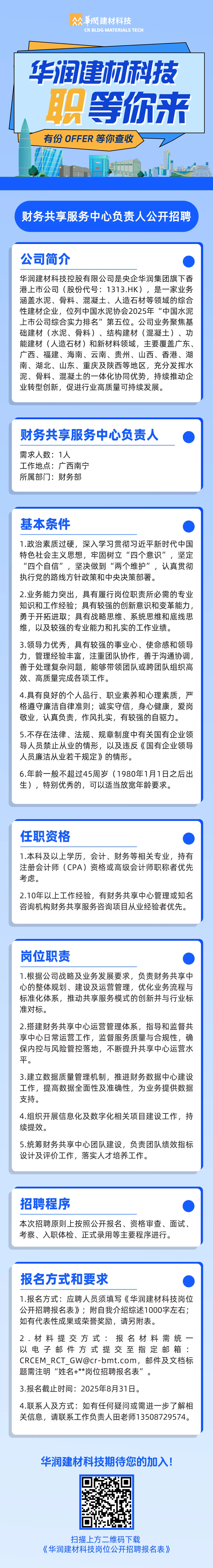 2025年華潤建材科技財務(wù)共享服務(wù)中心負(fù)責(zé)人公開招聘公告
