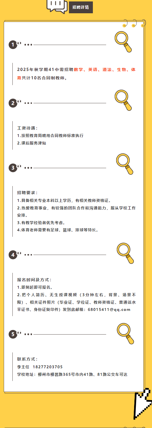 原文標(biāo)題:柳州市第四十一中學(xué) —— 招聘10名合同制教師