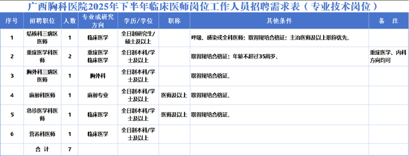▲附件1:廣西胸科醫(yī)院2025年下半年臨床醫(yī)師崗位工作人員招聘報名表。(掃一掃二維碼下載表格)