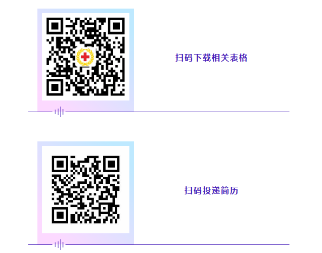 掃碼下載登記表等相關(guān)表格并填寫“個人應(yīng)聘信息表”,將“個人應(yīng)聘信息表”及個人簡歷以“姓名+專業(yè)+學(xué)校”的命名,發(fā)送至郵箱:hhyyrsk3858904@163.com;掃描二維碼,填報(bào)個人信息,上傳個人簡歷。