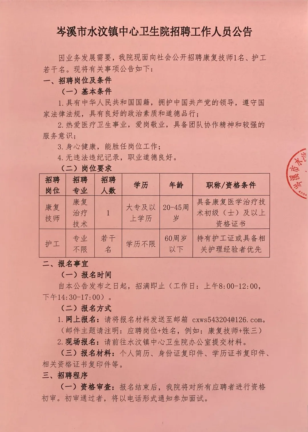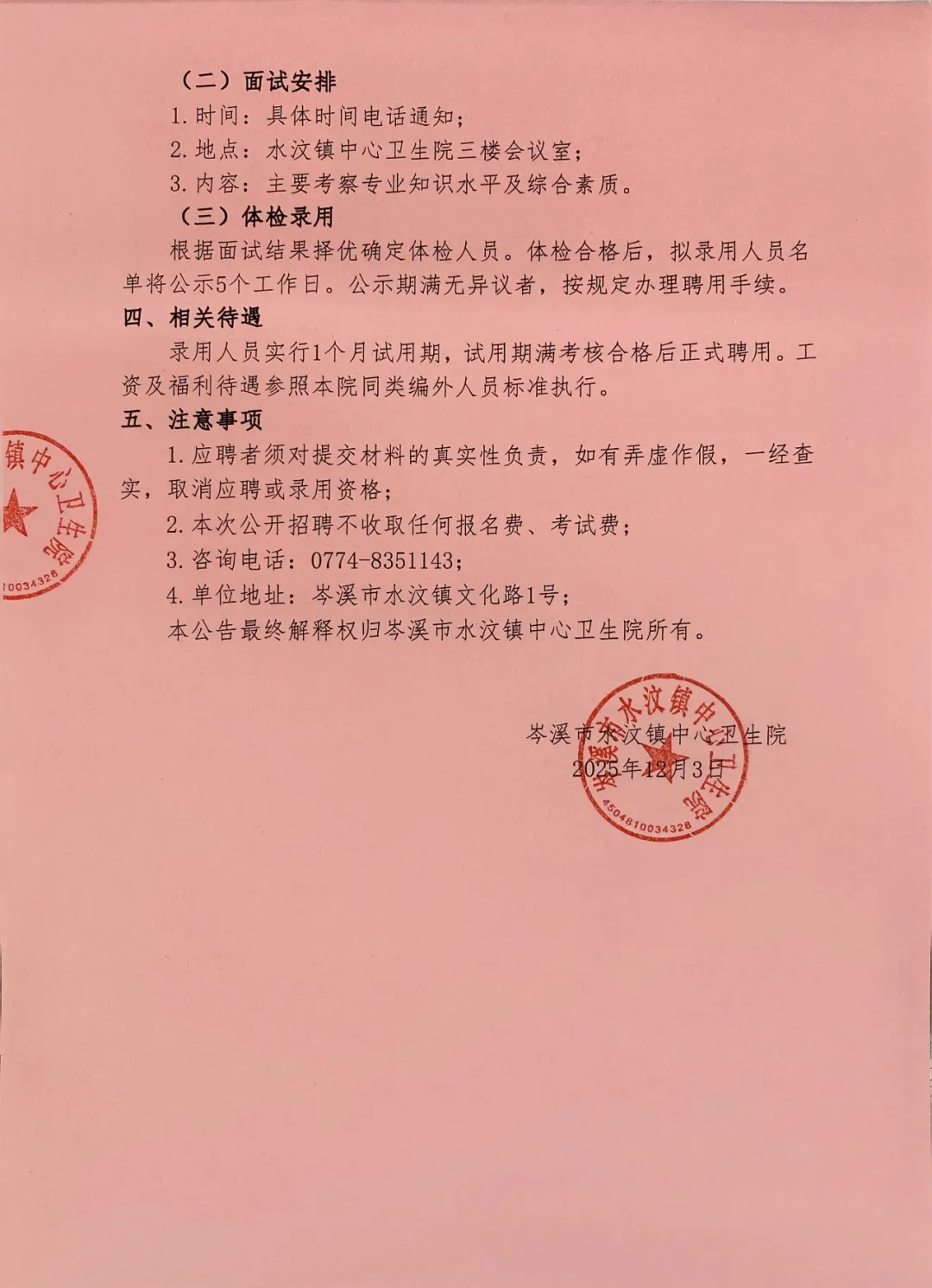 原文標題:2025年梧州岑溪市水汶鎮(zhèn)中心衛(wèi)生院招聘護士和康復(fù)技師