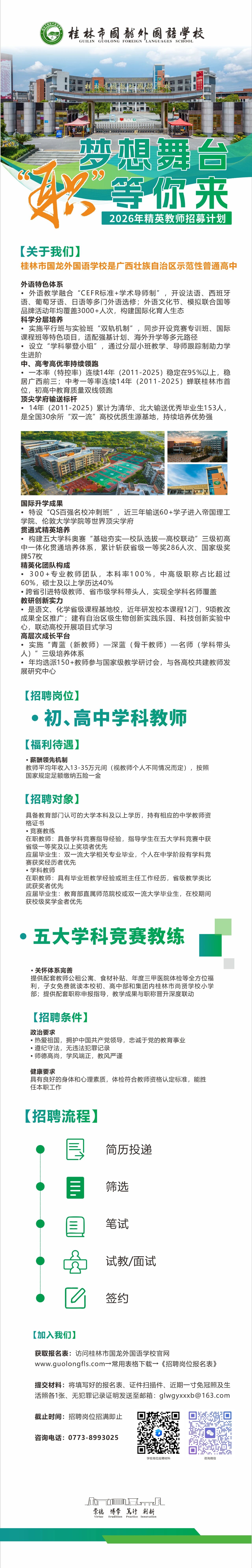 原文標(biāo)題:桂林市國龍外國語學(xué)校2026年精英教師招募計(jì)劃