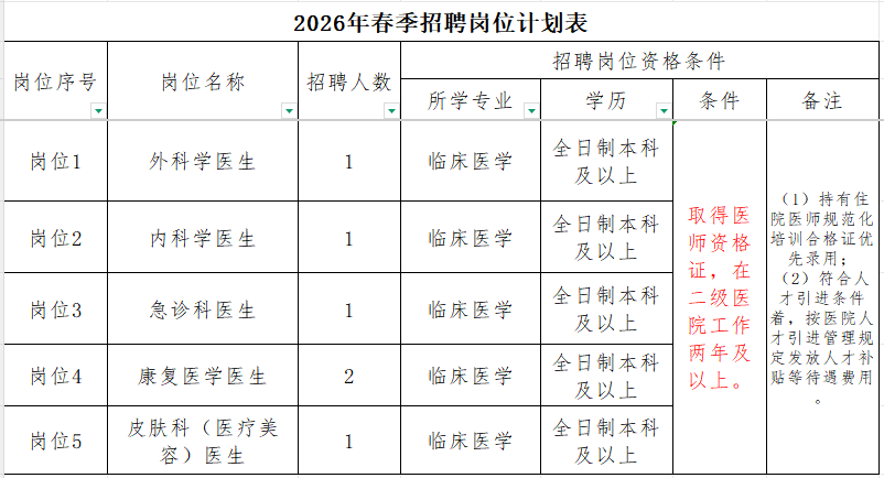 根據(jù)醫(yī)院業(yè)務(wù)發(fā)展需求,現(xiàn)向社會(huì)公開招聘以下崗位人員,具體招聘事宜如下:
